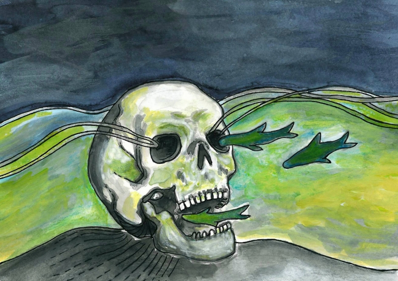 Ja jälleen Pukkila sanoo sattuvimmat sanat: ”Pirun, sarvipirun, sinä olet kirjoittanut paperille etkä laivanosaa.” Lahdenperä on kirjoittanut paperille Alastalon riivaajan, hänessä vaikuttavan katalyytin, pääomien loputtoman kasautumisen logiikan.17 Pukkila jatkaa naljailuaan ja vertaa Lahdenperän kömmähdystä friisin tarinaan, jossa syntinen friisi huijaa itsensä taivaaseen kävelemällä taivaan porteista takaperin. Lahdenperän laivanosa on Pukkilan mukaan friisin tavoin ”ketarajalakset ylöskäsin päin taivasta”.