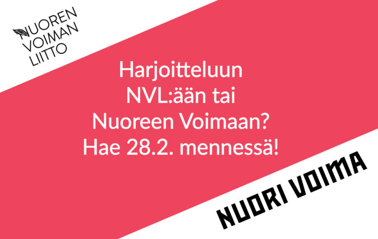 Nuoren Voiman Liiton ja Nuori Voima -lehden harjoittelupaikkojen haku on avattu. Lehti hakee toimitusharjoittelijaa ja NVL viestintä- ja tuottajaharjoittelijaa. Hae 28.2.2021 mennessä!