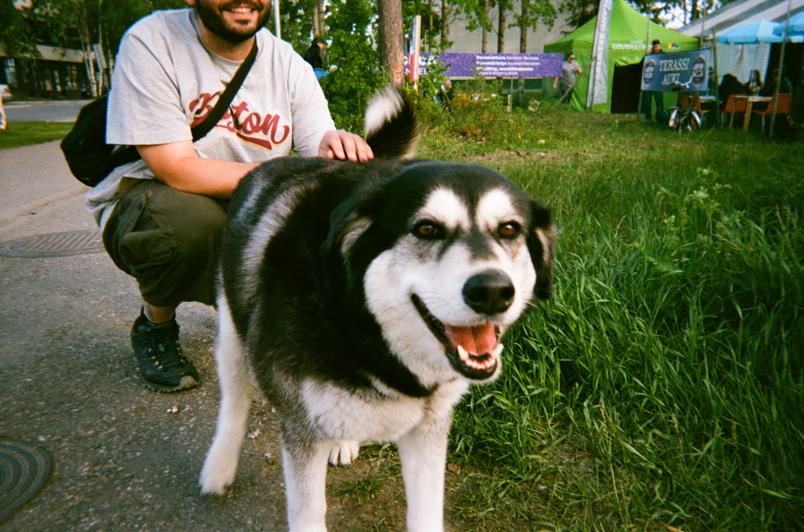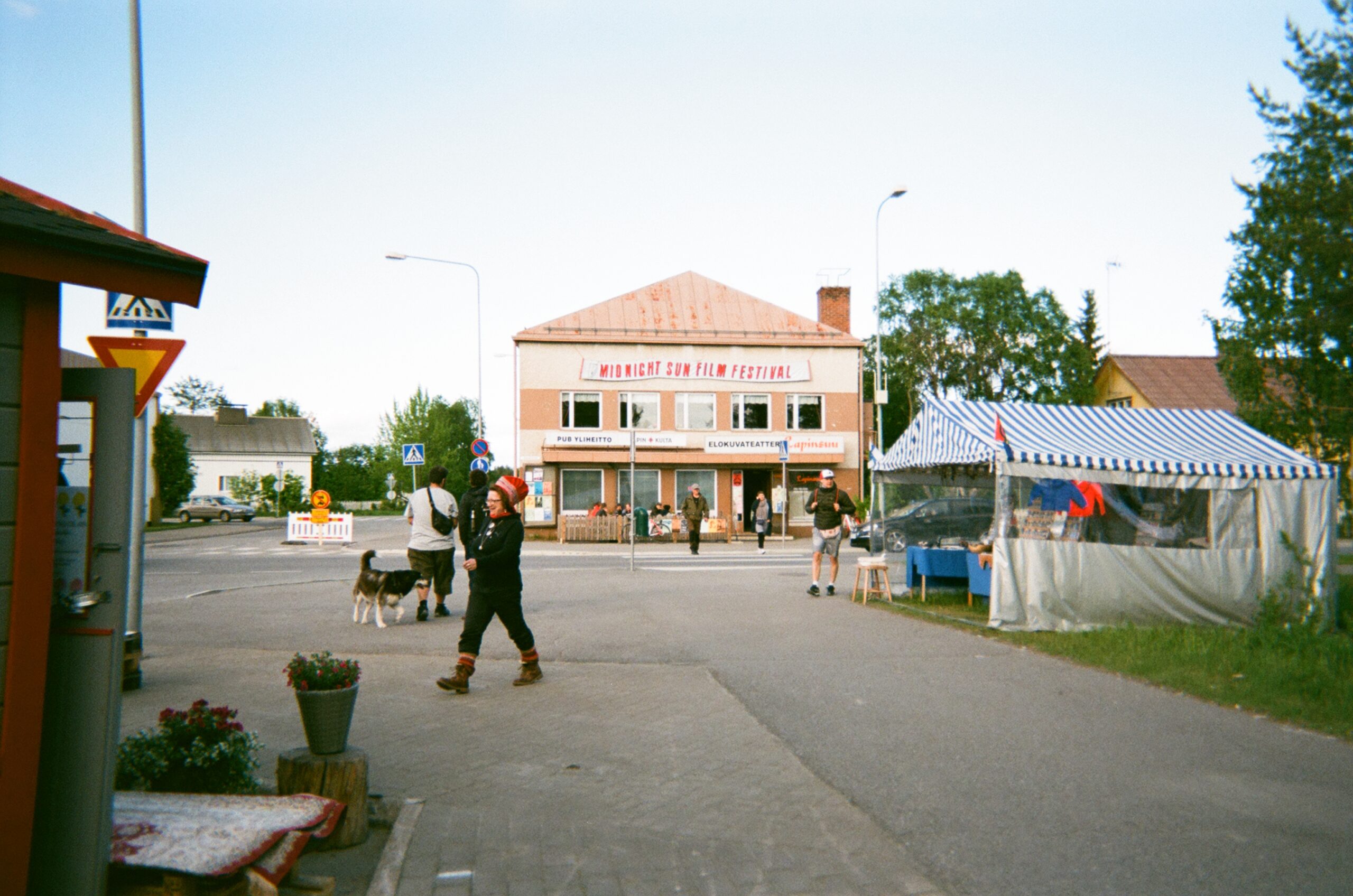 Auringossa kellii myös iso vaaleanruskea koiranretale tyytyväisen oloisena. Viime yön veriseksi äitynyt riita koiran ja hänen ihmisseuralaisensa välillä on jo unohdettu. Seuralainen on taas hyvällä tuulella, ja haava nenänpielessä on kuivahtanut iloiseksi ruskeaksi juovaksi. Eilistä ei muistella pahalla; paikalliset kertovat nauttivansa elokuvajuhlien tunnelmasta ja lämpimästä auringosta. Yksi heistä on kuitenkin aidosti huolestunut ottamani kuvan käyttötarkoituksesta. ”Tuleeko nää johonkin pervokäyttöön?”, hän kysyy muutamaan otteeseen. ”Ei, lupaan ettei tule pervokäyttöön”, yritän vakuutella. Tajuan, että ylläni on aurinkohattu, aurinkolasit ja huivi.