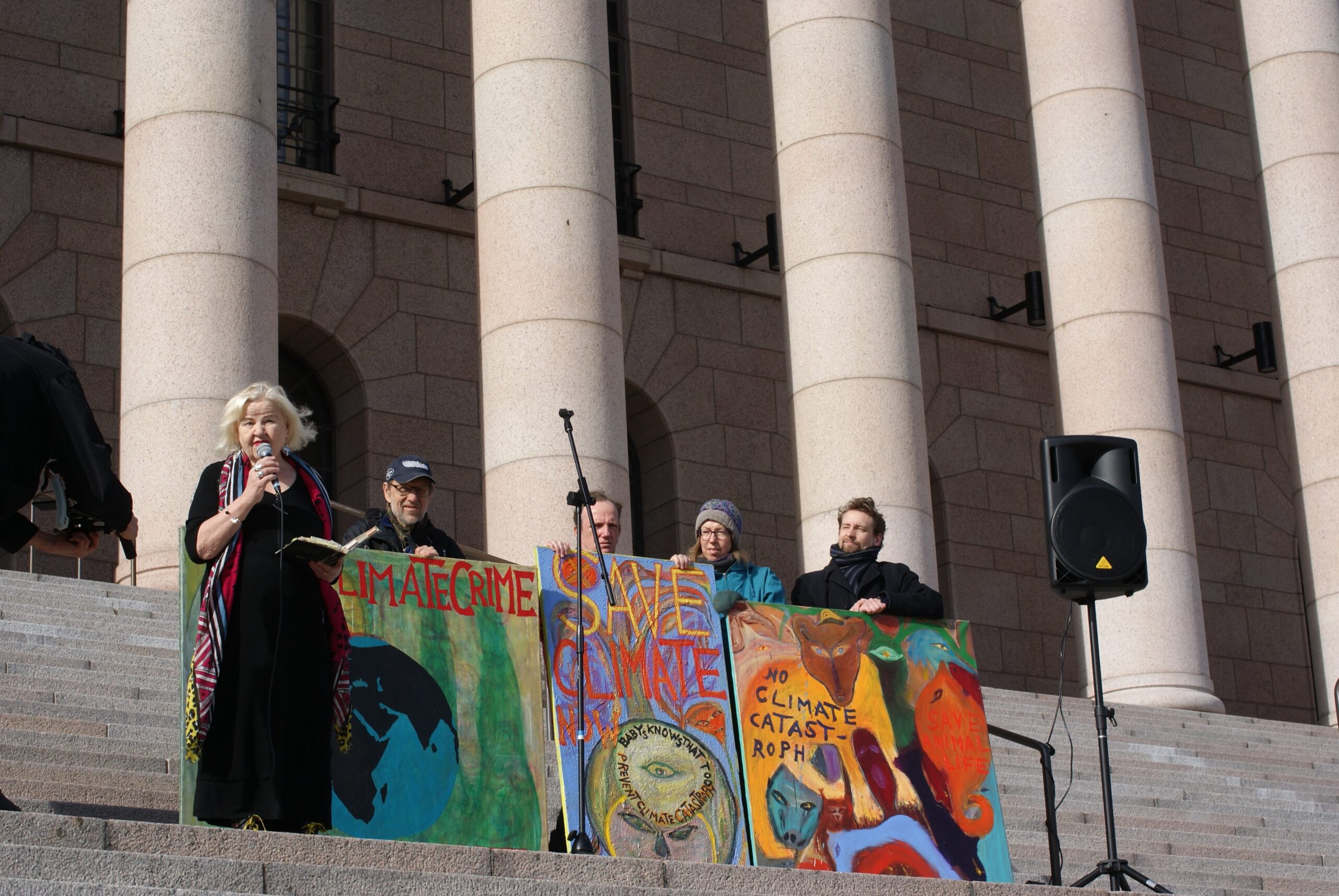 Jotkut omistavat runonsa Gretalle. Tapahtuman nimi on Runoilijat Gretan kanssa (viitaten perjantaisiin mielenosoituksiin Perjantait Gretan kanssa) ja Gretan nimi vilahtelee plakaateissa. Runoilija Stina Saari saa taiteilija Oliver Fellmanilta lahjaksi maalauksen Gretasta. Risto Oikarinen esittää runonsa Kirje Gretalle. Joku sanoo: ”hän on täällä tänään”. En tiedä, mitä Greta ajattelisi kaikesta tästä (tiedän vain, mitä Saska ajattelee).