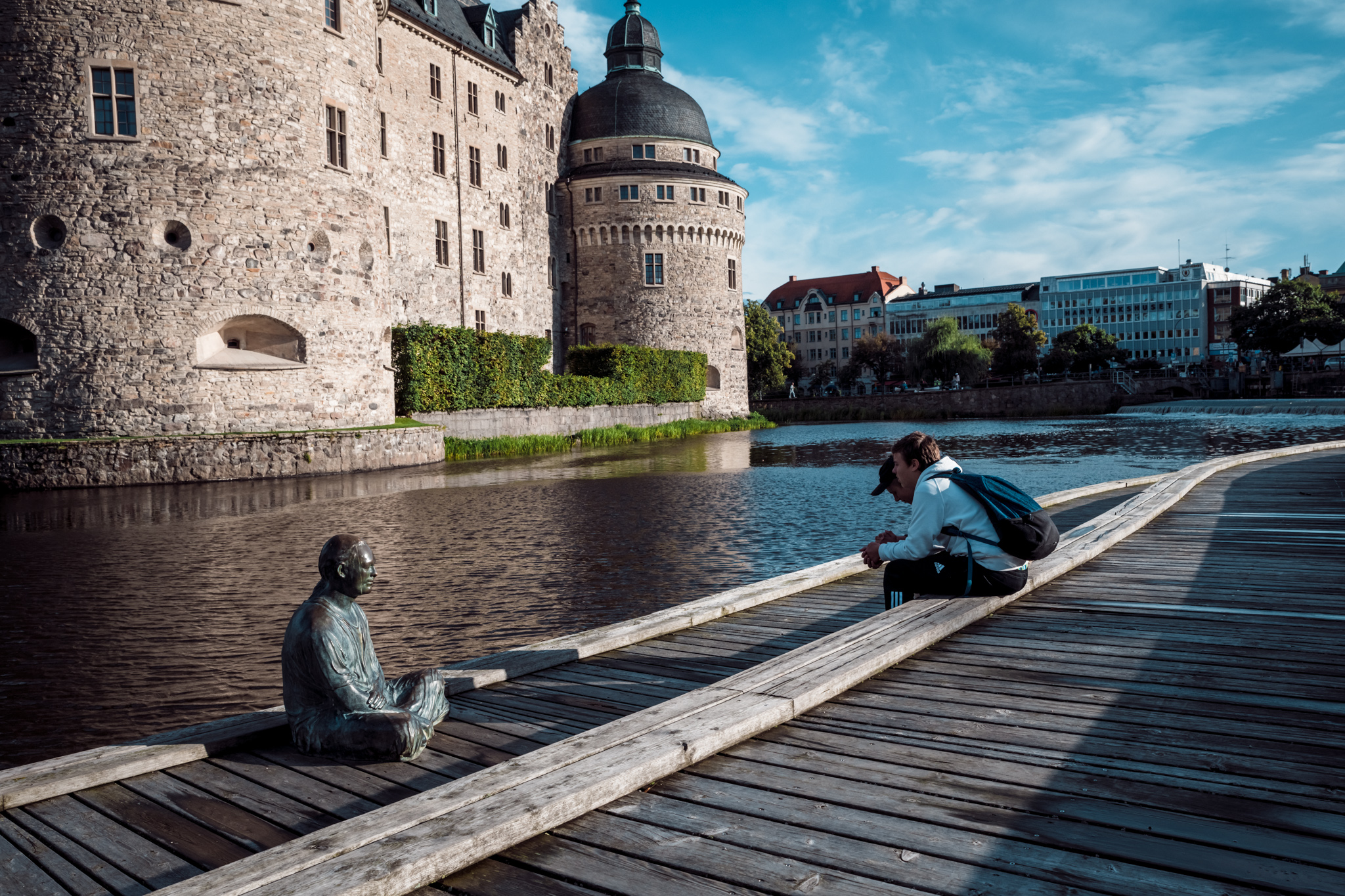 Sade on väistynyt, ja pompöösi linna kylpee auringossa pienen keskiruotsalaisen kaupungin keskustassa. 700-vuotias linnoitus tuntuu vyöryvän ikkunoiden läpi miltei syliin örebrolaisen Elite Stora -hotellin ravintolasaliin, vaikka välissä virtaa Svartån-joki ja vilkasliikenteinen rantakatu.