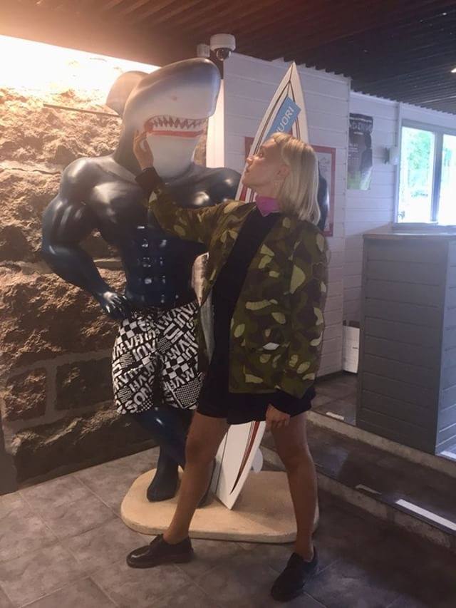 Palaamme päärakennukselle mutustamaan eväitä bodatun hain seuraan Puppa J:n esiintyessä. Harri vinkkaa, että esityslavan kulmasta löytyy pieni tanssihuone. Rynnimme innostuksissamme ruotsinlaivan diskoa muistuttavaan pikkuiseen Pub Loposeen, jossa panemme jalalla koreasti Antti Tuiskun ja JVG:n tahtiin. Pian kuitenkin jo saunassa meitä ilahduttanut sonnilauma alkaa vallata rajattua tilaa alastomilla ylävartaloillaan, ja kun yksi vinkkaa lähemmäksi ja kysyy, onko minulla hameeni alla alushousuja ollenkaan, kiidämme Loposesta sopivasti ulkolavalla alkavan karaokeillan ääreen.