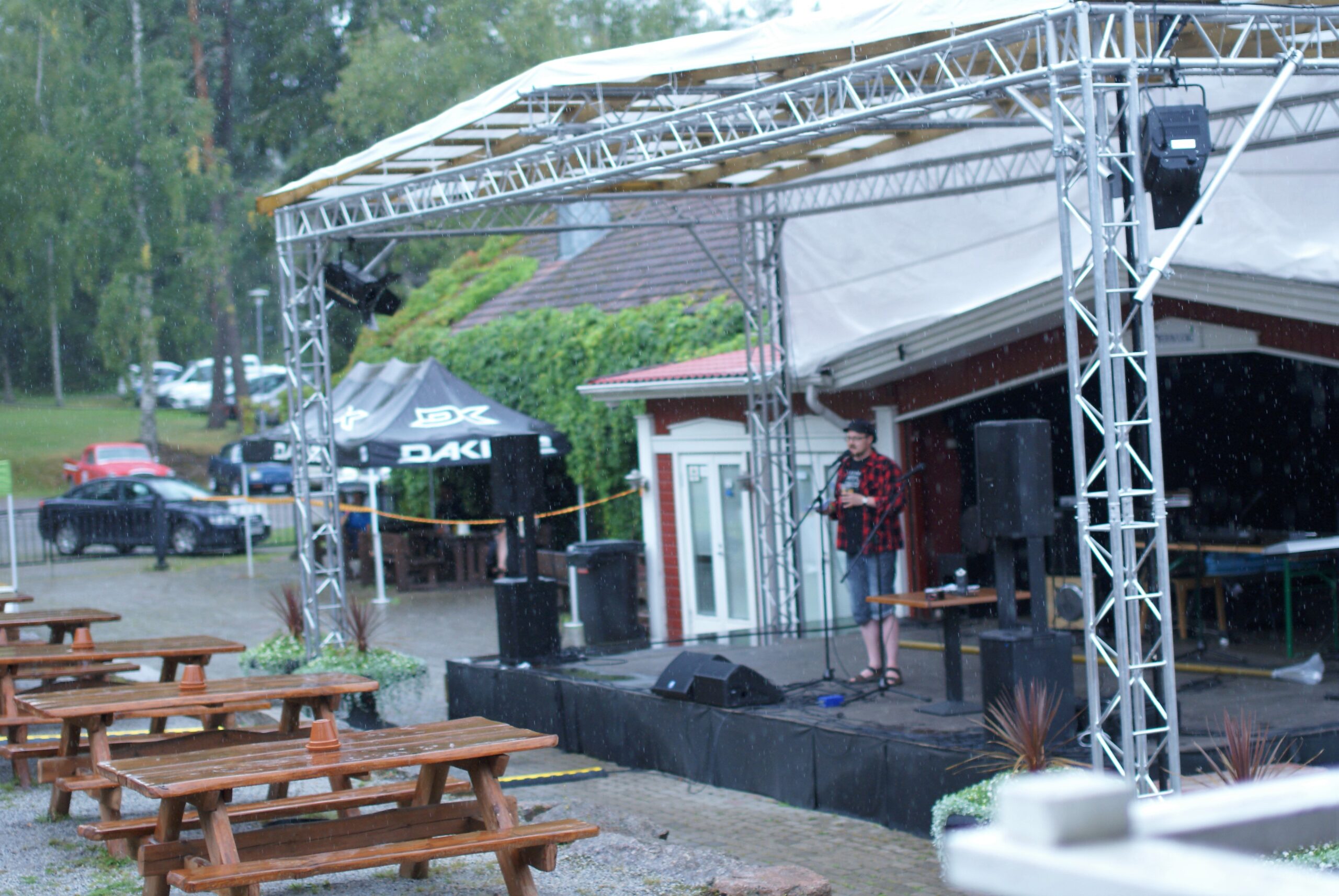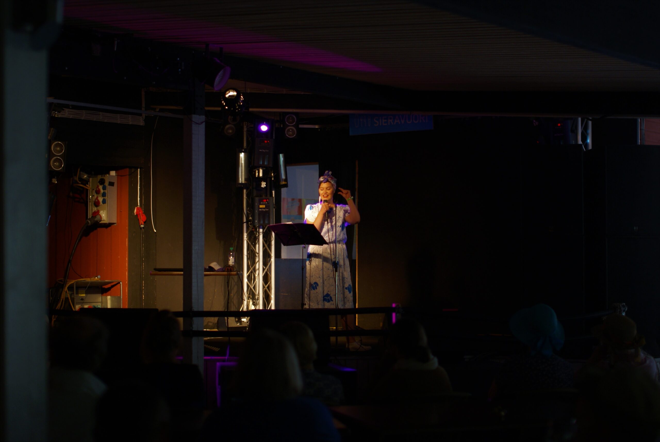 Nyt yleisö on kuivatellut sateen yltään ja lämmennyt täysin. Aplodit raikuvat entistä kovempaa ja tuolit täyttyvät uusilla tulijoilla. Pimeänkelmeä sisätila tuntuu jollain tapaa sopivan tilaisuuden luonteeseen ulkolavaa paremmin – se tuo ihmiset lähemmäs toisiaan, lähemmäs esiintyjiä ja lähemmäs baaritiskiä. Seuraavana esiintyy Joose Keskitalo, joten etsimme Inarin kanssa vapaat paikat ja odotamme silmät suurina.