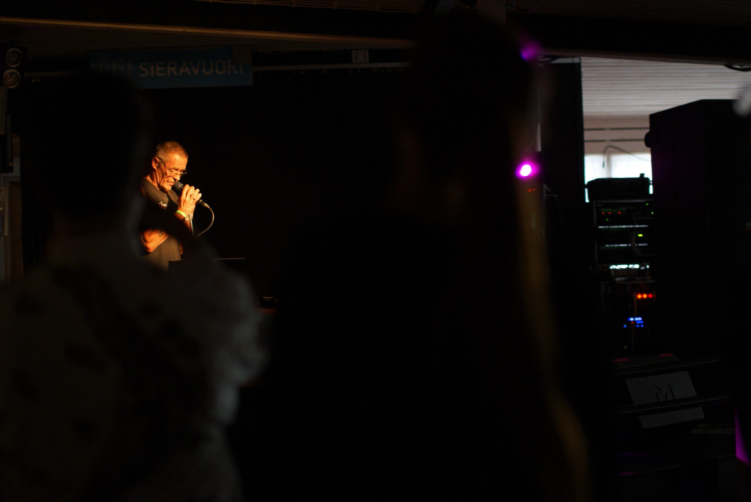 Joosen aloittaessa Inari siirtyy lähemmäs, sillä hän haluaa immersoitua laulujen maailmaan. Minä jään taka-alalle tarkkailemaan yleisöä. Helmikorvakoruinen täti katsoo vierustoveriaan huulet yhteen puristuneina, kun Joose laulaa siitä kärpäsestä, joka on juonut sinun kustasi ja syönyt sinun ruumistasi. Katselen, kuinka hitaasti myös täti vaipuu katsomon ylle laskeutuneen hartauden tilaan. Joosen lopettaessa kollektiivinen liikutus purkautuu auvoisiin suosionosoituksiin. Artistikuva on kontekstiriippuvainen: täällä Joose on ennemmin runoilija kuin muusikko. Keskitalon läsnäolo festivaaleilla osoittaa, että lavarunous ei ole tiukkarajainen taiteenlaji: hänen maneerinsa ja lauletut runonsa ovat muodoltaan eri maailmasta muiden esiintyjien kanssa. Se on piristävää.