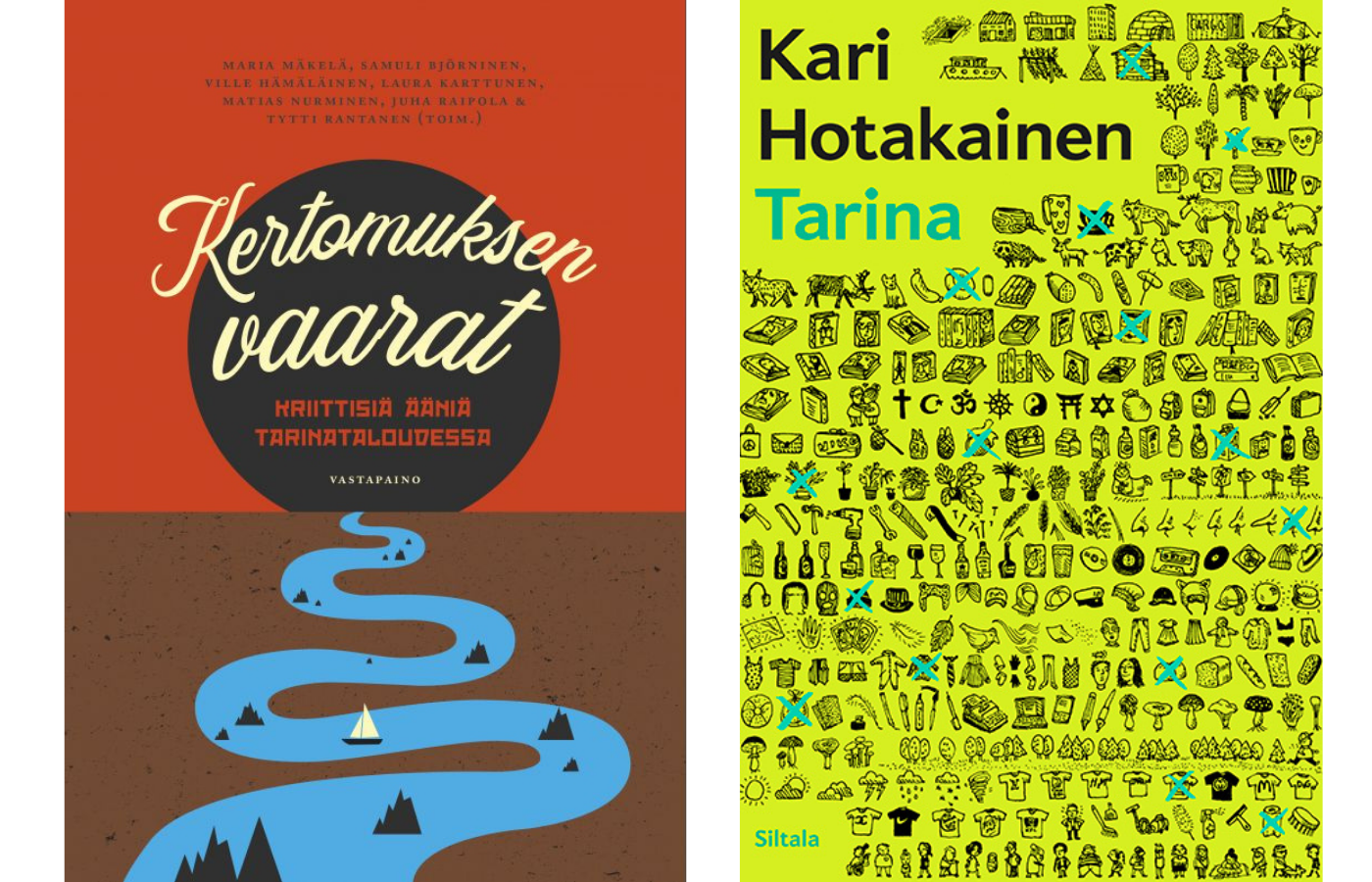 Kirjakaupan inspiraatiomuistikirjojen kannet yhyttävät oman tarinan kertomiseen. Influensseri kertoo, kuinka selvisi masennuksesta ja mainostaa samalla terapiapalveluita tarjoavaa yritystä. Mitä keskiluokkaisempaa tuotetta myydään, sitä varmemmin pakkauksen kyljestä löytyy kertomus tai lupaus oman elämän päähenkilöydestä. Vetävästi kerrottu tarina on myyntivaltti, josta voi olla hyötyä niin työnhaussa, asuntomarkkinoilla kuin politiikassa. Tarinatalous-käsitteen popularisoimisesta käy kiittäminen ennen kaikkea tutkija Maria Mäkelää ja tämän johtamaa Kertomuksen vaarat -tutkimushanketta, joka vuonna 2020 paketoitiin kirjamuotoon. Hankkeen Facebook-sivulla tutkijat ovat purkaneet palasiksi mediasta ja somesta tuttuja kertomuksia, viraaleja eksemplumeja, ja avanneet niiden takana olevia arvolatauksia.