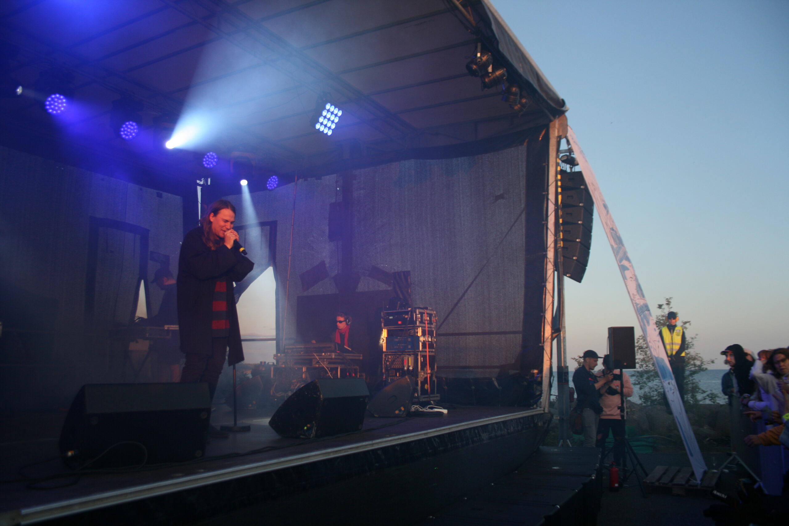 Festivaalien toinen päivä alkoi hiekkarannalla darrajoogalla ja tynnyrisaunassa kylpemisellä. Darrajooga on konseptina samaan aikaan hedonistis-rappiollinen ja itsekehityshenkinen, siis räätälöity sille yleisölle, jota festivaalipomo Roukala kutsuu haastattelussa ”edelläkävijöiksi”. Darra ja jooga ovat heidän korviinsa kuiskivat piru ja enkeli, mistä aiheesta toivon vaikkapa Jyrki Lehtolan vielä kirjoittavan. Vaikka asialle tekisi itsekin mieli vinoilla, totuus on, että darrajooga toimii. Festivaaleilla ruumis jää liian usein tomumajan rooliin, vaikka päiviä kestävään taiteesta nauttimiseen tarvitaan vetreyttä ja kehotietoisuutta.