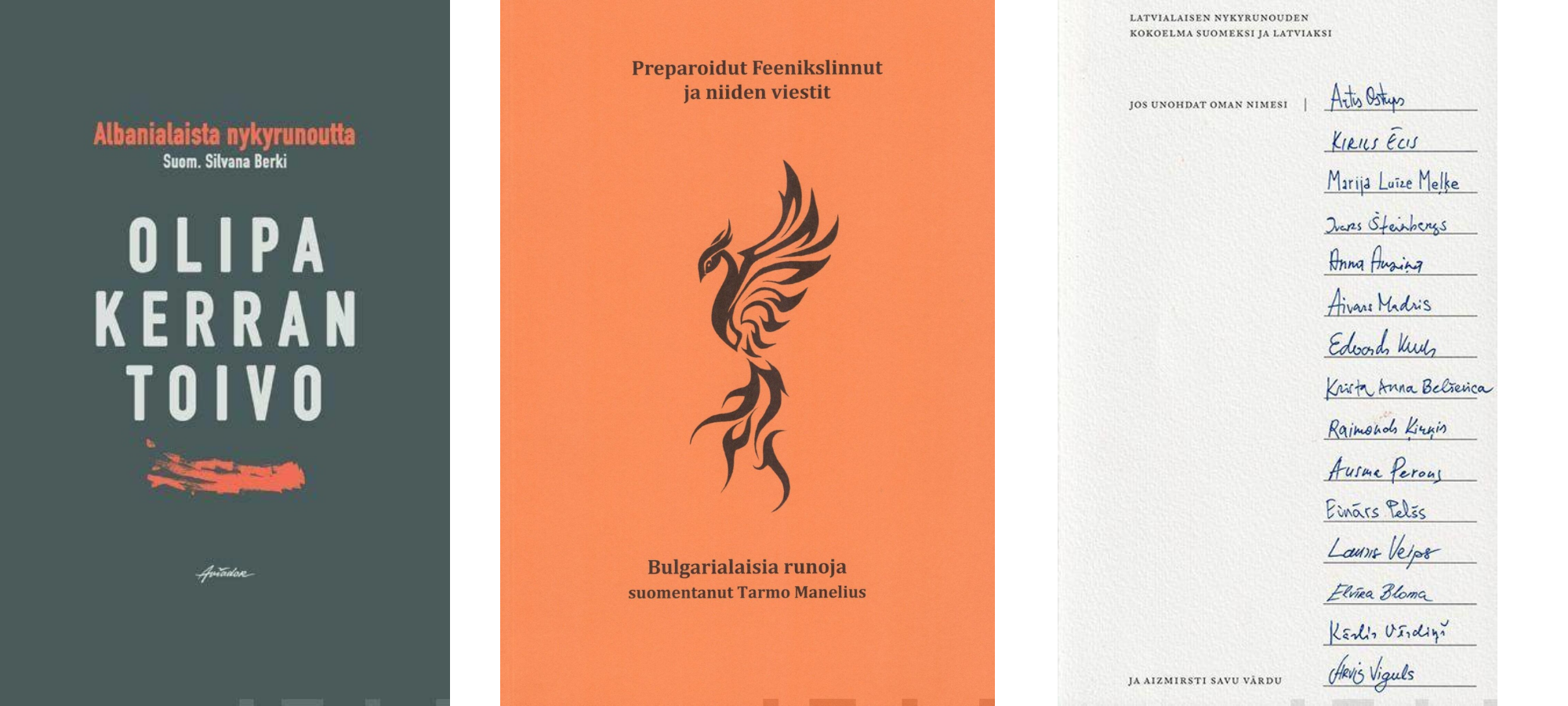 Vieläkin tuoreempi balkanintuliainen on bulgarialaisen runouden kokoelma Preparoidut Feenikslinnut ja niiden viestit (2020). Sekään ei pahemmin selitä käännös- tai kirjailijavalintojaan, kuten suppeaa sukupuoli- tai ikähaitariaan. Aloin kuitenkin pian lukemaan teosta siinä vahvasti näkyvän konkarisuomentaja Tarmo Maneliuksen persoonan kautta. Valikointiperiaatteena vaikuttavatkin olleen Maneliuksen omat mieltymykset ja suhteet runoilijoihin, mikä antaa kokoelmalle harvinaisen intiimin sävyn.