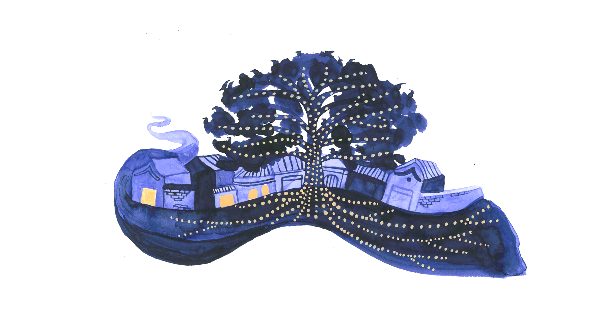 Ukkonen jyrisee edelleen, välillä kaukana ja välillä lähellä, mikä saa korvani humisemaan. Kävelen Vanhalle aaveelle ja kiipeän sen oksille istumaan. Lumihiutaleet satavat kahisten alas, mutta yksikään niistä ei osu minuun. Ympärilläni on rauhallista ja lämmintä. Käperryn pieneksi ja nukahdan linnun lailla pää olkapäätäni vasten.