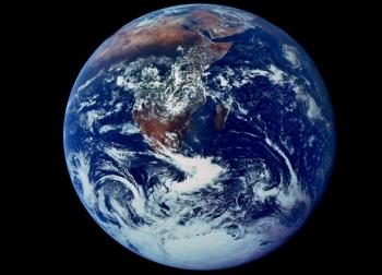 Toinen lähes yhtä varhainen ja kuuluisa kuva on Blue Marble viimeiseltä Apollo-lennolta vuodelta 1972. Se on ainoa ihmisen omin käsin ottama valokuva, jossa Maa näkyy kokonaan valaistuna. Kuva esiintyy Joni Mitchellin laulussa ”Refuge of the Roads” (Hejira, 1976): ”In a highway service station over the month of June/ was a photograph of the Earth taken coming back from the Moon/ and you couldn’t see a city on that marble bowling ball/ or a forest, or a highway, or me, least of all”. Kuva on kaikkialla läsnä monistettuna, siihen törmää yllättäen kalenterikuvassa. Maa ei suoraan edestä otetussa kasvokuvassa ole Mitchellin sanoin marmorikuulan vaan keilapallon kokoinen. Sen täyspyöreässä yksityiskohtaisuudessa on jotakin painavaa. Se on silti verraten pieni, ja erityisesti itseään siitä etsivä ihminen on mitättömän kokoinen.