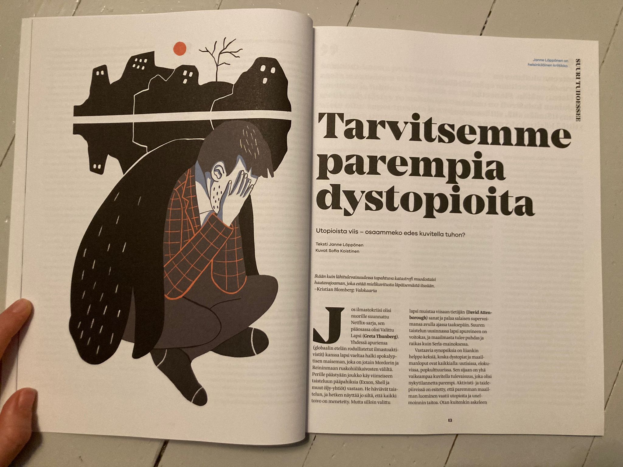 Johanna Osváthin artikkelissa sukelletaan Eeva Joenpeltoon ja samalla Nuoren Voiman historiaan: Joenpelto nimittäin oli ensimmäinen lehden päätoimittajana työskennellyt nainen. Sofia Blanco Sequeiroksen viimeisessä kolumnissa yritetään mennä mustikkaan. Toimitus kiittää Sofiaa kolumnistikaudesta! Novellistina Liinu Yli-Hongisto, jonka tekstissä mennään yhtä lailla metsään. Haastattelussa kirjailija Sergio Augusto Sanchéz ja liittolainen Eino Santanen.