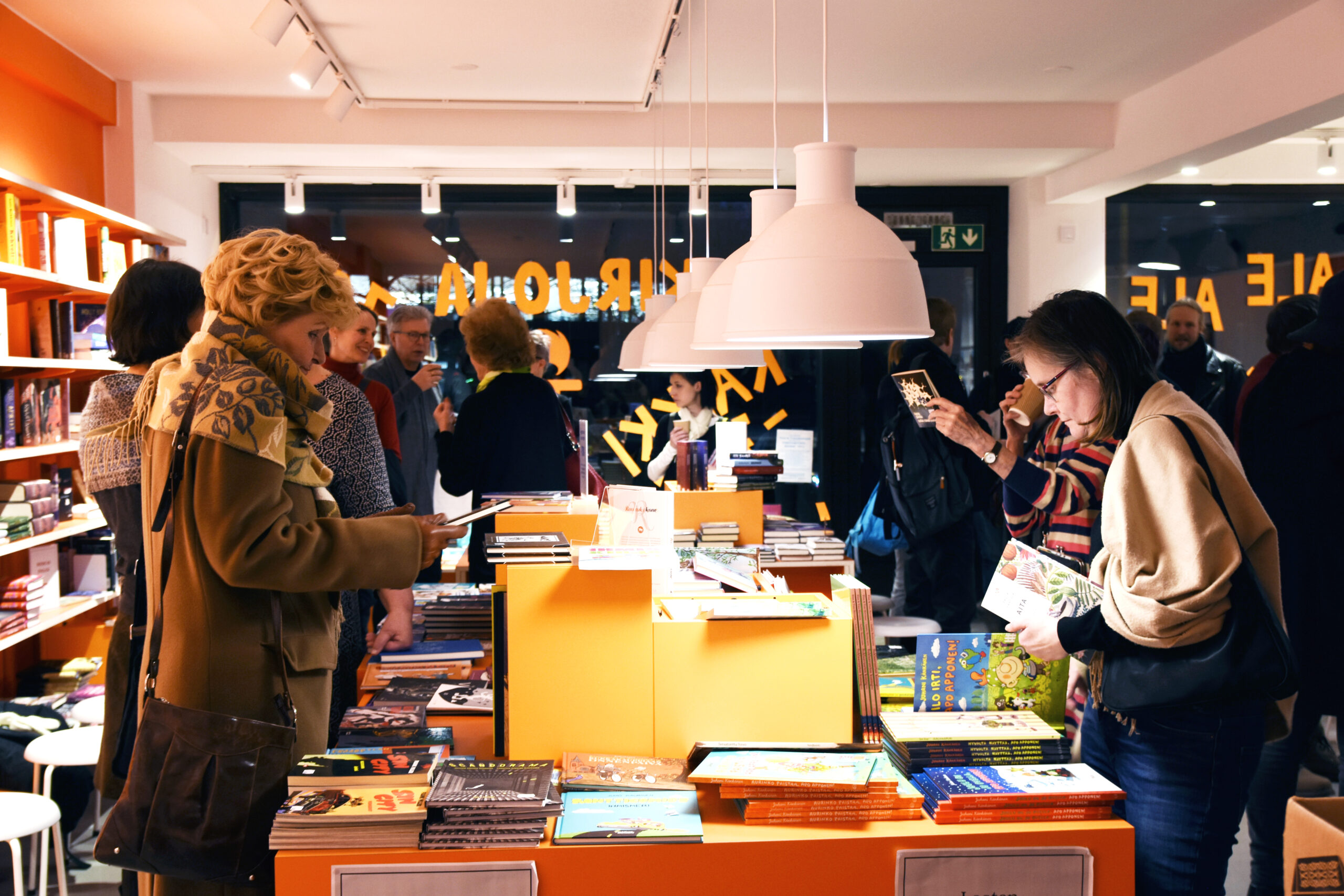 Uudistunut kirjakauppa oli entiseen kirjapinoluolaan verrattuna melkoinen näky. Väliseinä kaadettiin. Seinät maalattiin oranssiksi, kustantamon brändiin sopien. Vanhat monenkirjavat hyllyt vaihtuivat elegantteihin, sisustusarkkitehti Petra Majantien suunnittelemiin valaistuihin tasoihin ja liikuteltaviin pöytiin. Designtuolit korvasivat kaiken kotikutoisen. Kuitenkin kirjakaupasta tuli houkuttelevampi paikka poiketa. Siellä oli tilan tuntua.